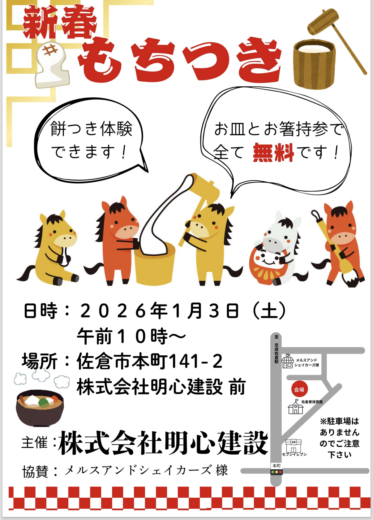 2026年 1月3日 10時~明心建設前にて新春お餅つき開催します!